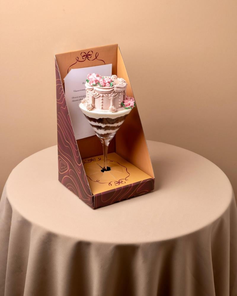 كيك مارتيني فخم من نيبولا، كيكة وردية ناعمة مزينة بزهور كريمية يدوية، بتصميم رومانسي وجذاب يعكس الجمال الكلاسيكي ويضيف لمسة راقية لمناسباتك الخاصة.
